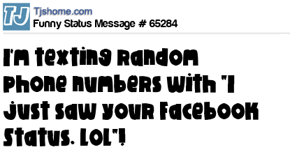 - # 63830 I think I'm gonna start texting random numbers saying "OMG, I JUST SAW YOUR FACEBOOK STATUS! I CAN'T BELIEVE THAT HAPPENED TO YOU!!"