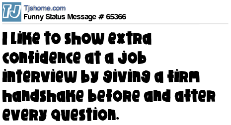 X is I like to show extra confidence at a job interview by giving a firm handshake before and after every question.