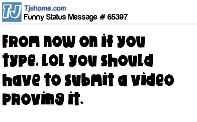 - # 78662 From now on if you type, "LOL" you should have to submit a damn video proving it.