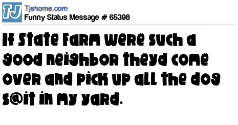 X is If State Farm were such a good neighbor theyd come over and pick up all the dog s@it in my yard.