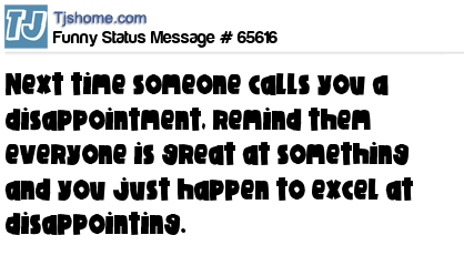 X Next time someone calls you a disappointment, remind them everyone is great at something and you just happen to excel at disappointing.