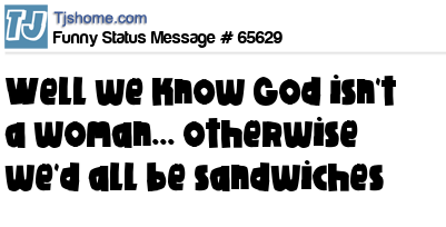 X well we know God isn't a woman... otherwise we'd all be sandwiches