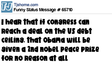 X I hear that if congress can reach a deal on the US debt ceiling, that Obama will be given a 2nd nobel peace prize for no reason at all