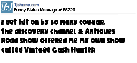 X is I get hit on by so many cougar, the discovery channel & Antiques road show offered me my own show called Vintage Gash Hunter
