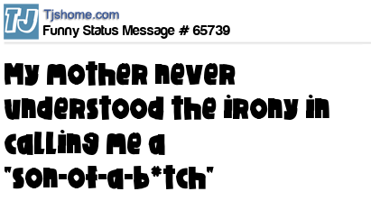 - # 41750 My mother never understood the irony in calling me a ”son-of-a-b!tch.”