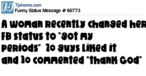 X is A woman recently changed her FB status to "got my periods" 20 guys liked it and 30 commented "thank God"