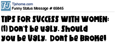 X says TIPS FOR SUCCESS WITH WOMEN: (1) Don't be ugly. Should you be Ugly, Dont be Broke!