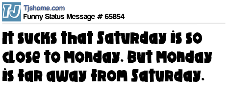 X says It sucks that Saturday is so close to Monday. But Monday is far away from Saturday.