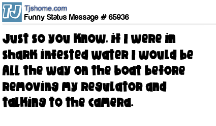 X  Just so you know, if I were in shark infested water I would be ALL the way on the boat before removing my regulator and talking to the camera.