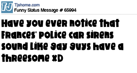 X is Have you ever notice that Frances' police car sirens sound like gay guys have a threesome xD