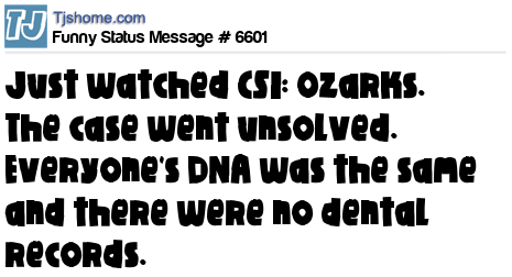 - # 7817 just watched CSI: Ozarks. The case went unsolved. Everyone's DNA was the same and there were no dental records.