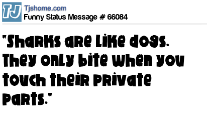 - # 160046 "Sharks are like dogs, they only bite when you touch their private parts"-Shark Week lesson of the day