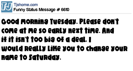 X says Good morning Tuesday. Please don't come at me so early next time. And if it isn't too big of a deal, I would really like you to change your name to Saturday.
