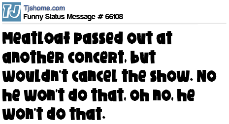 X says Meatloaf passed out at another concert, but wouldn't cancel the show. No he won't do that, oh no, he won't do that.