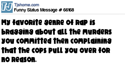 X is My favorite genre of rap is bragging about all the murders you committed then complaining that the cops pull you over for no reason.
