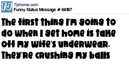 X is The first thing I'm going to do when I get home is take off my wife's underwear. They're crushing my baIIs