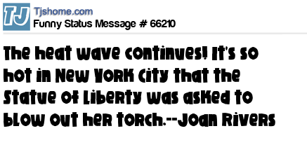 X is The heat wave continues! It's so hot in New York City that the Statue of Liberty was asked to blow out her torch.--Joan Rivers