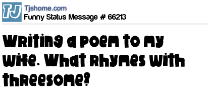 - # 115312 I'm trying to write a poem for my girlfriend, does anyone know what rhymes with threesome?
