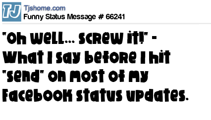 X "Oh well... screw it!" - What I say before I hit "send" on most of my Facebook status updates.