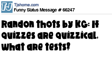 X Randon thots by KG: If quizzes are quizzical, what are tests?