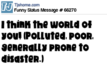 X is I think the world of you! (Polluted, poor, generally prone to disaster.)
