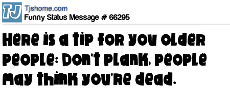 X is Here is a tip for you older people: Don't plank, people may think you're dead.