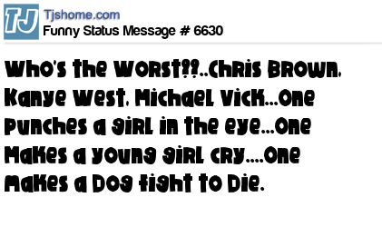 X is Who's the Worst??..Chris Brown, Kanye West, Michael Vick...One punches a girl in the eye...One Makes a young girl cry....One makes a Dog fight to Die.