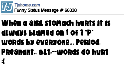 X When a girl stomach hurts it is always blamed on 1 of 2 "P" words by everyone... Period, Pregnant.. <--words do hurt :(