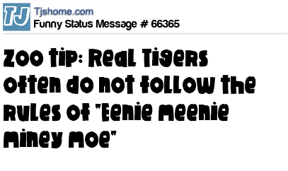 X is Zoo tip: Real Tigers often do not follow the rules of "Eenie meenie miney moe"