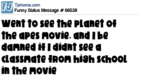 X is went to see the planet of the apes movie. and I be damned if I didnt see a classmate from high school in the movie