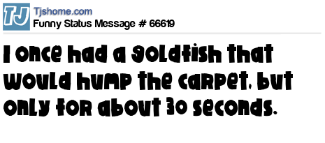 - # 70457 I once had a goldfish that would hump the carpet. But only for about 30 seconds.