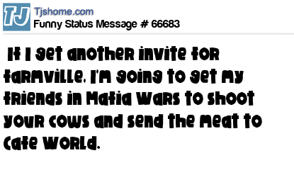 X If I get another invite for farmville, I'm going to get my friends in Mafia Wars to shoot your cows and send the meat to Cafe World.