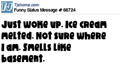 X Just woke up. Ice cream melted. Not sure where I am. Smells like basement.