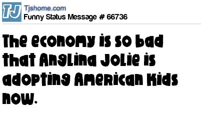 X The economy is so bad that Anglina Jolie is adopting American kids now.