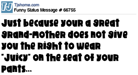 X Just because your a great grand-mother does not give you the right to wear "Juicy" on the seat of your pants...