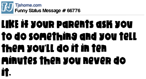 - # 78168 Your parents ask you to do something and you tell them you'll do it in ten minutes but you never do it.....