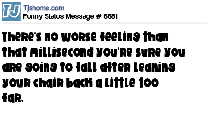 - # 18138 There's no worse feeling than that millisecond you're sure you are going to fall after leaning your chair back a little too far.