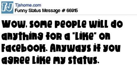X Wow, some people will do anything for a "like" on Facebook. Anyways if you agree like my status.