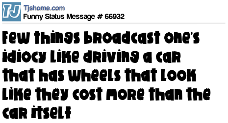 - # 66919 Few things broadcast one's idiocy like driving a car that has wheels that look like they cost more than the car itself.