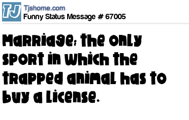 X is Marriage; the only sport in which the trapped animal has to buy a license.