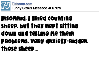 - # 139875 When suffering from insomnia I either count sheep or ask my GF how her day was.
