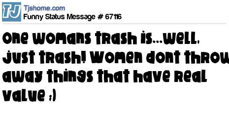 X is One womans trash is...well, just trash! Women dont throw away things that have real value ;)