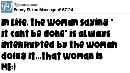X is In life, the woman saying " it cant be done" is always interrupted by the woman doing it...that woman is ME:)