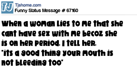 X says When a woman lies to me that she cant have sex with me becoz she is on her period, I tell her, "its a good thing your mouth is not bleeding too"