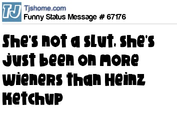 - # 109742 I'm not saying she is a slut, but she has been on more wieners than heinz ketchup