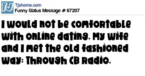 X says I would not be comfortable with online dating. My wife and I met the old fashioned way: Through CB radio.