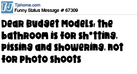 X says Dear Budget Models; the bathroom is for sh*tting, pissing and showering, not for photo shoots