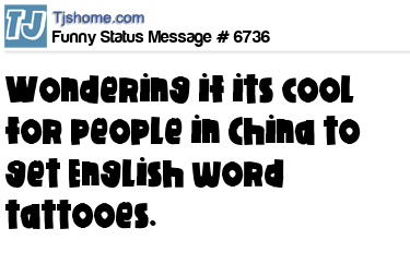 - # 67701 wondering if its cool in China to get English words tattooed on their arms?