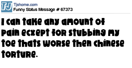X is i can take any amount of pain ecxept for stubbing my toe thats worse then chinese torture.