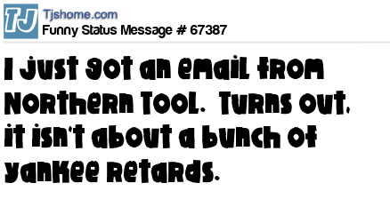 X I just got an email from Northern Tool. Turns out, it isn't about a bunch of yankee retards.